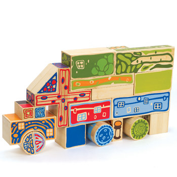 They come in fun shapes and sizes, which inspires us to use our imagination to create unusual structures and designs. So far, we have built everything from castles and houses to trucks and windmills. Little M’s favorite thing though, is to build tall towers and then knock them down with a big crash!