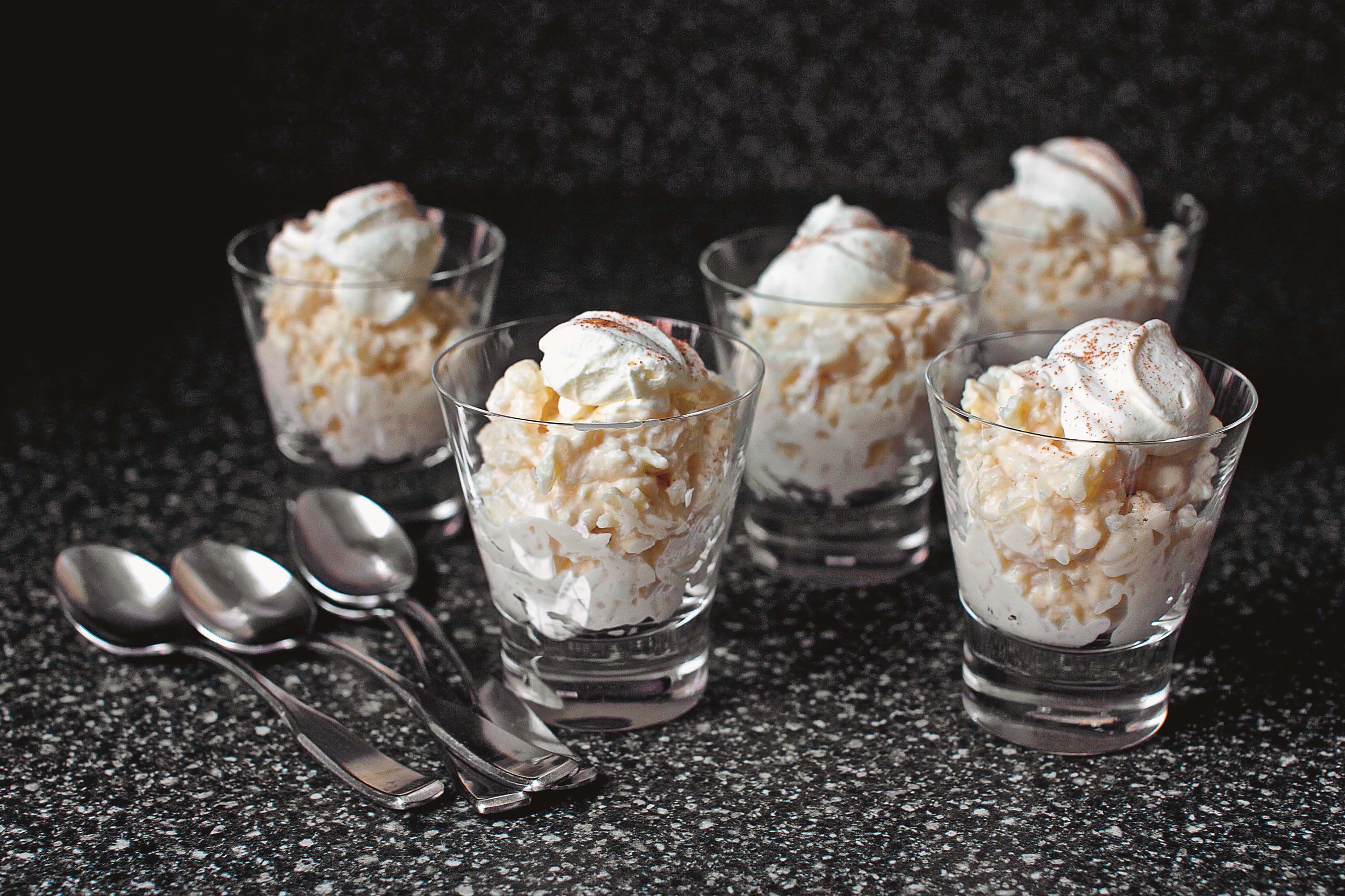 My list of rice pudding loves is long. There’s the Danish risalamande, with chopped almonds, whipped cream, and a sour cherry sauce, usually served at Christmas with a prize inside— one that I never win, not that I’ve been trying for thirteen years at my best friend’s house or anything. There’s kheer, with cardamom, cashews or pistachios, and saffron. There’s rice pudding the way our grandmothers made it, baked for what feels like an eternity, with milk, eggs, and sugar. And there’s arroz con leche, which is kind of like your Kozy Shack went down to Costa Rica for a lazy weekend and came back enviously tan, sultry, and smelling of sandy shores. As you can tell, I really like arroz con leche.