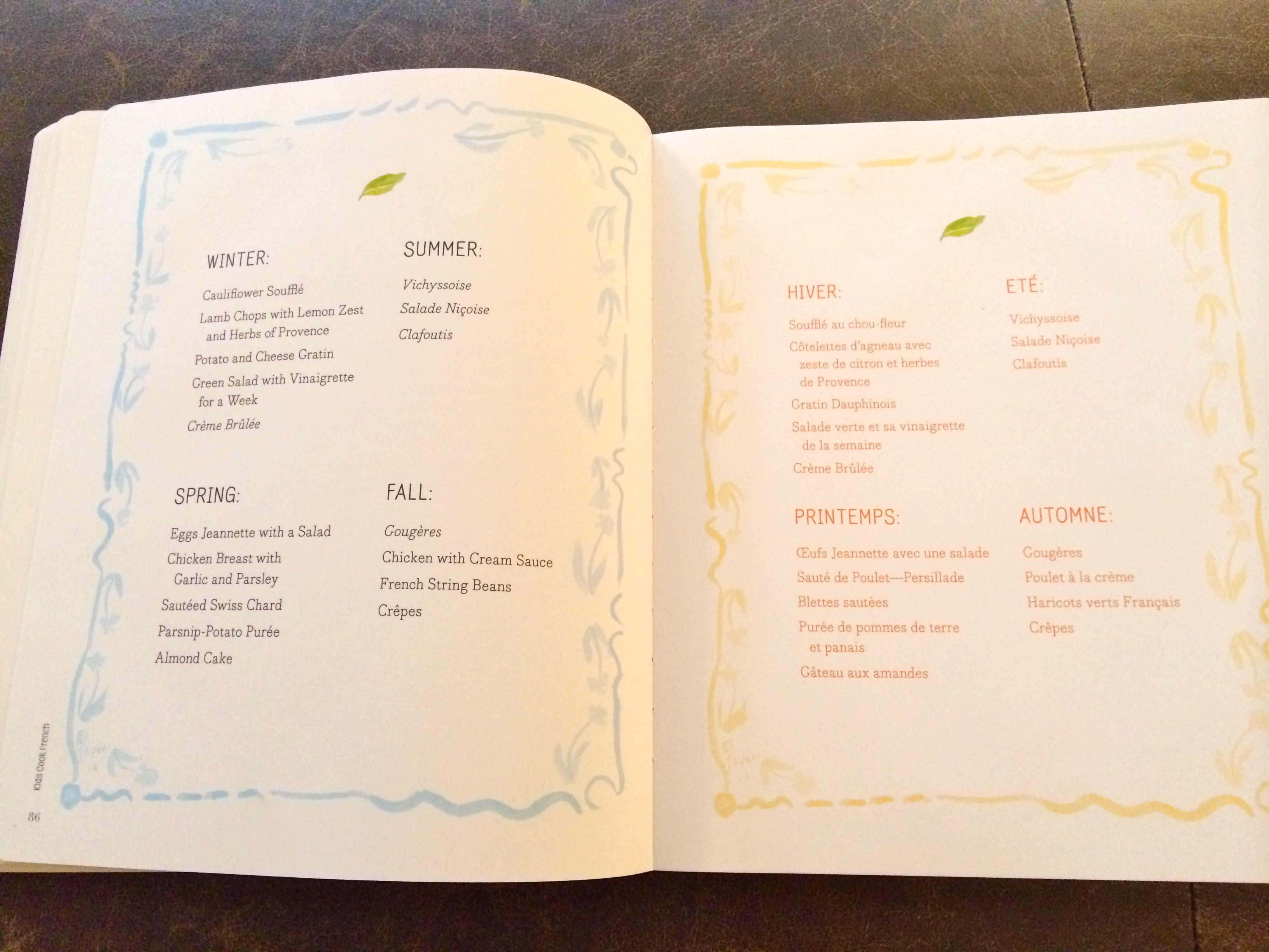 The classic French recipes are written in English and French. It has been fun to read the recipes together and practice our French. There aren’t any photos of the food, but the illustrations are gorgeous and so colorful.